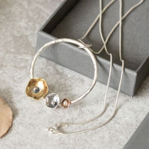 Sterling silver & mixed metal jewellery, handcrafted in my studio / shop in the beautiful market town of Hexham, Northumberland. I use traditional metalworking tools and techniques to create texture and form, transforming an unassuming piece of metal into wearable art. My inspiration comes largely from the local landscape, represented in the earthy mixed metal tones of the copper and brass used alongside sterling silver in my work. Welcome to my world; I hope you love it here!
