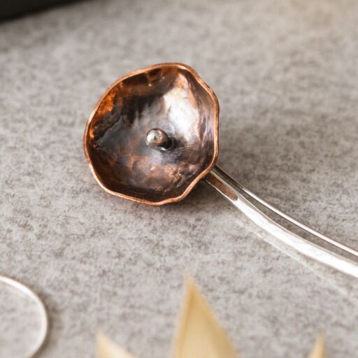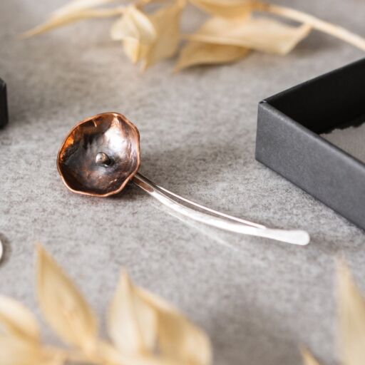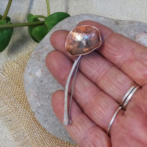 Copper & Sterling Silver Single Stem Flower Brooch