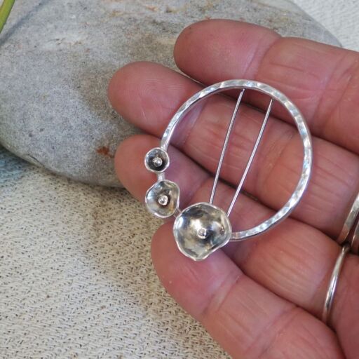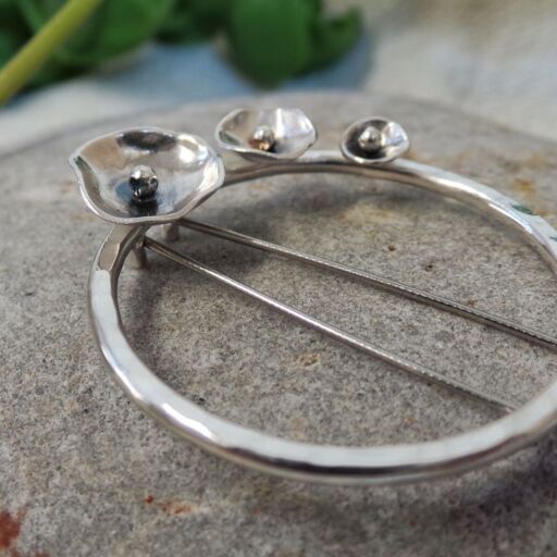 Sterling Silver Floral Hoop Brooch