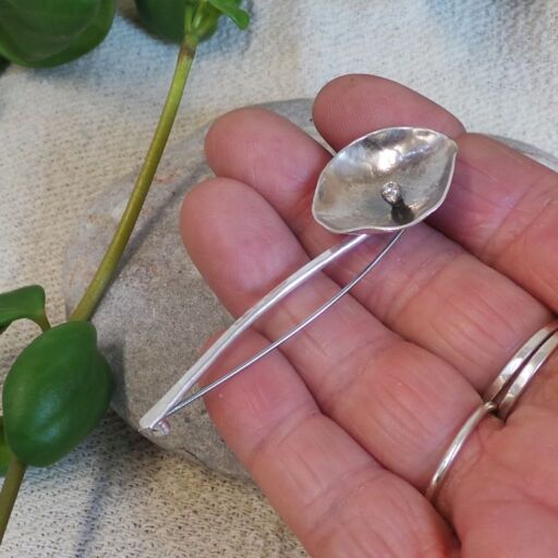 Sterling Silver Single Stem Flower Brooch