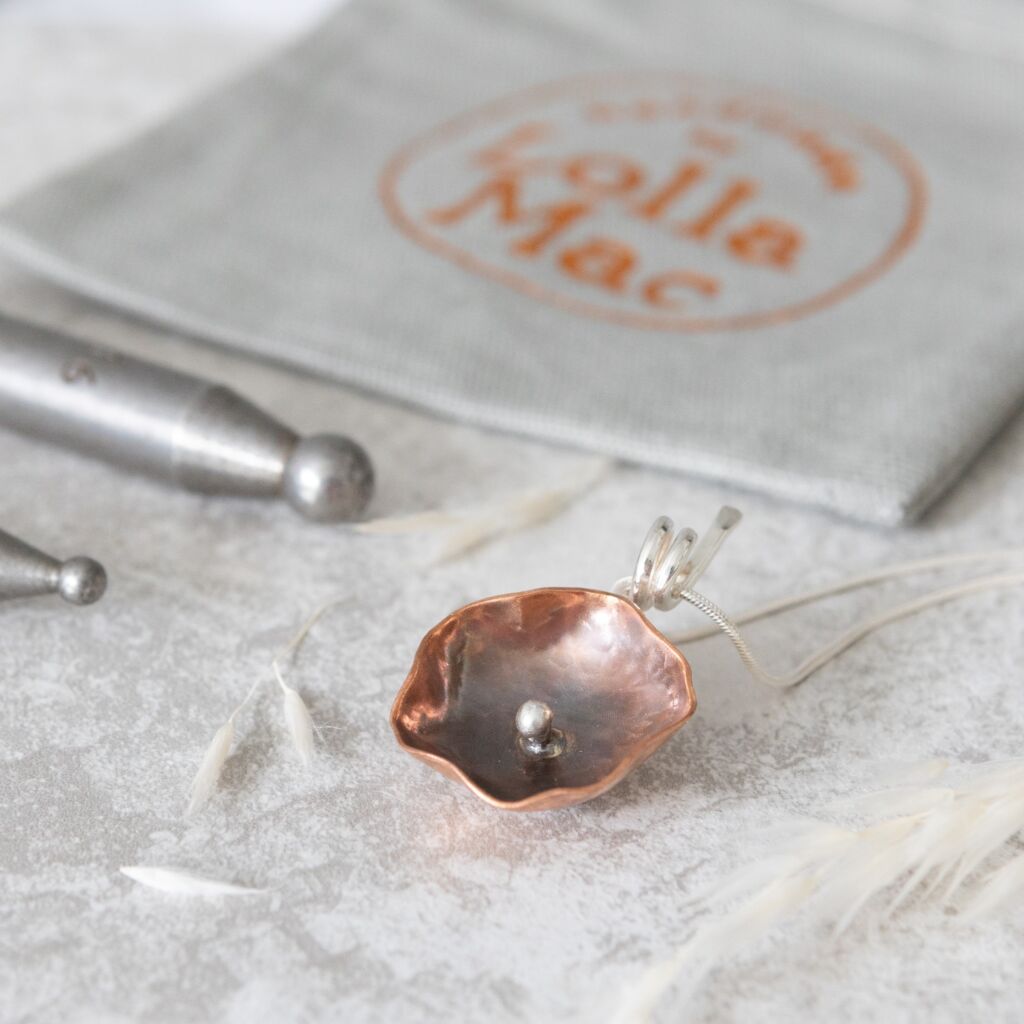 You will receive your copper & silver flower pendant tissue wrapped in a LollaMac branded grey cotton pouch. If you would prefer your pendant gift boxed, please select the option below.