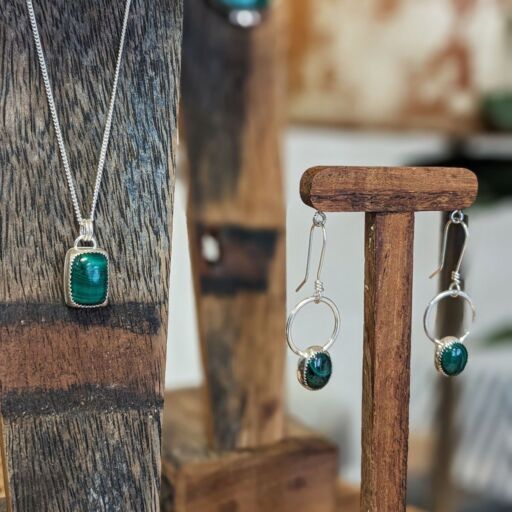 I absolutely adore the variations in the shades of green contained even within just one stone, as well as the beautiful patterns revealed when the stones are cut and polished. Over the past few years I’ve slowly built up a collection of cabochons, just waiting to be turned into beautiful jewellery. The inspiration for the Spring Greens collection came (as it often does!) from being out walking. I noticed the colour of the landscape slowly changing, with green shoots of spring slowly coming to life, and that stash of malachite stones came straight to mind!Â