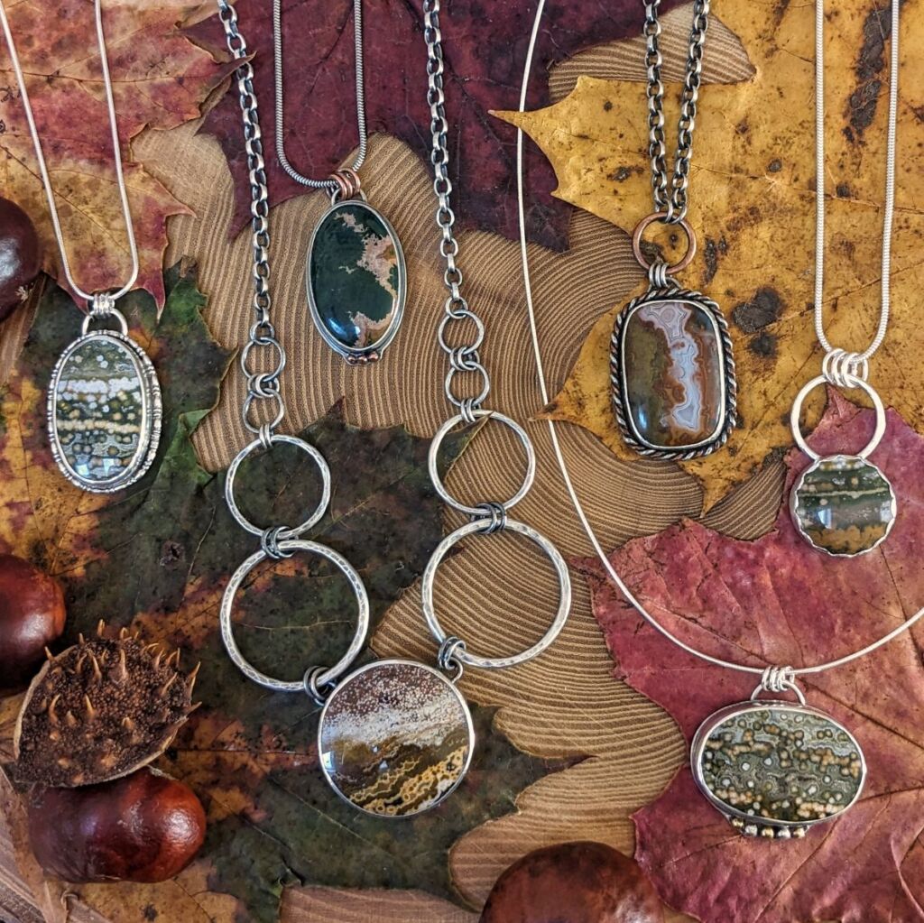 Neatly summed up in a small, but perfectly formed collection of necklaces and earrings, this is my ode to Autumn! Featuring a selection of jaspers, agates and a few garnets, each stone and setting is completely unique. Working on these pieces has been a completely different experience for me in the workshop, both technically and creatively, and I’ve absolutely LOVED it. I’ve certainly been challenged but I am really proud of the results and hope you love them too!