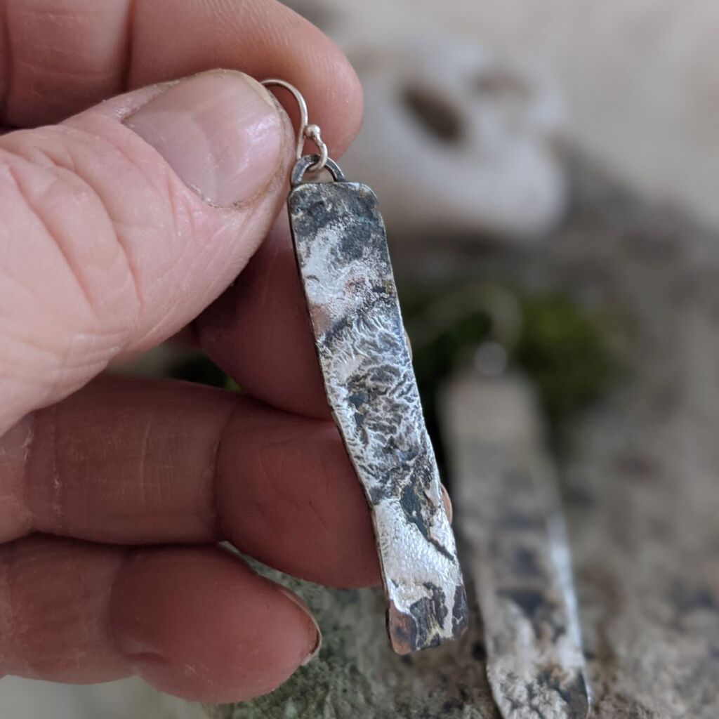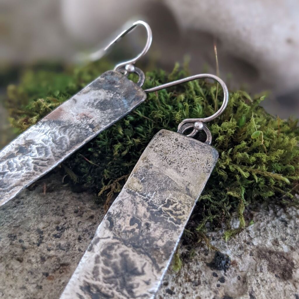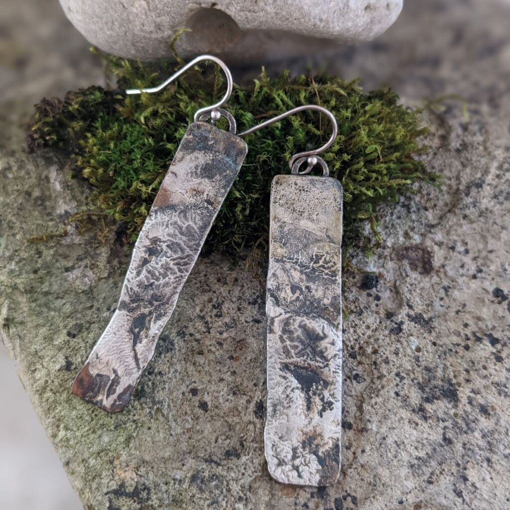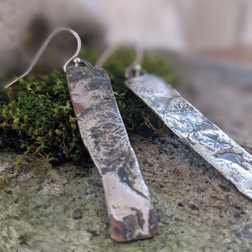 These reclaimed silver and copper earrings form part of my ‘Tundra’ collection, inspired by the rugged, desolate, yet hauntingly beautiful landscape of Iceland. From the volcanic craters to the vast lava fields, the milky blue lagoons to the black beaches. This collection is my take on the incredible textures, all created naturally by fire. Each piece in the collection is completely unique, with a wide variety in the textures and finished which come out. Please be aware that the jewellery you receive will be similar to, but not identical to the photos shown here.