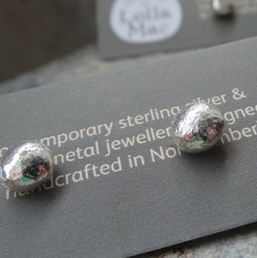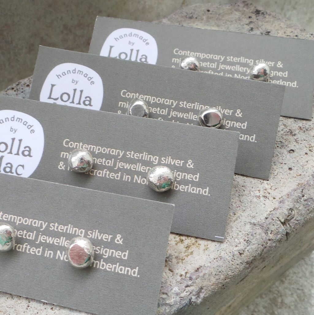 Your reclaimed silver pebble studs will be shipped to you wrapped in tissue paper within a LollaMac branded gift pouch.