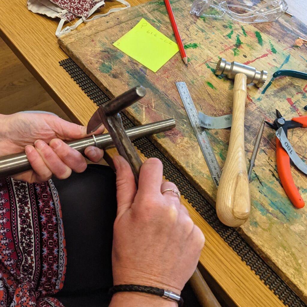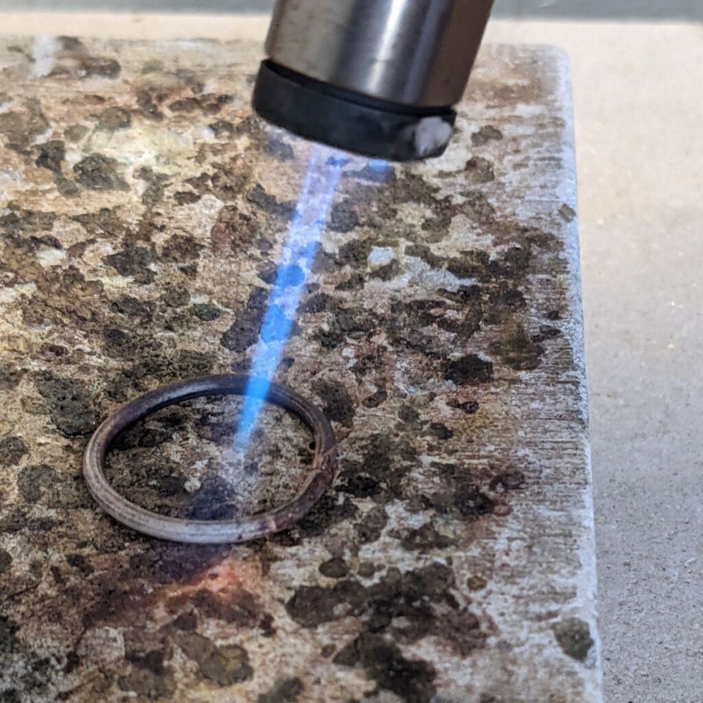 Under guidance, you will work through the different processes from measuring and cutting your metal, through forming, soldering and texturing, to cleaning up and polishing your rings. You will start with a ‘practice’ ring in copper or brass, before moving on to produce either two more narrow bands, or one wider band, in sterling silver.