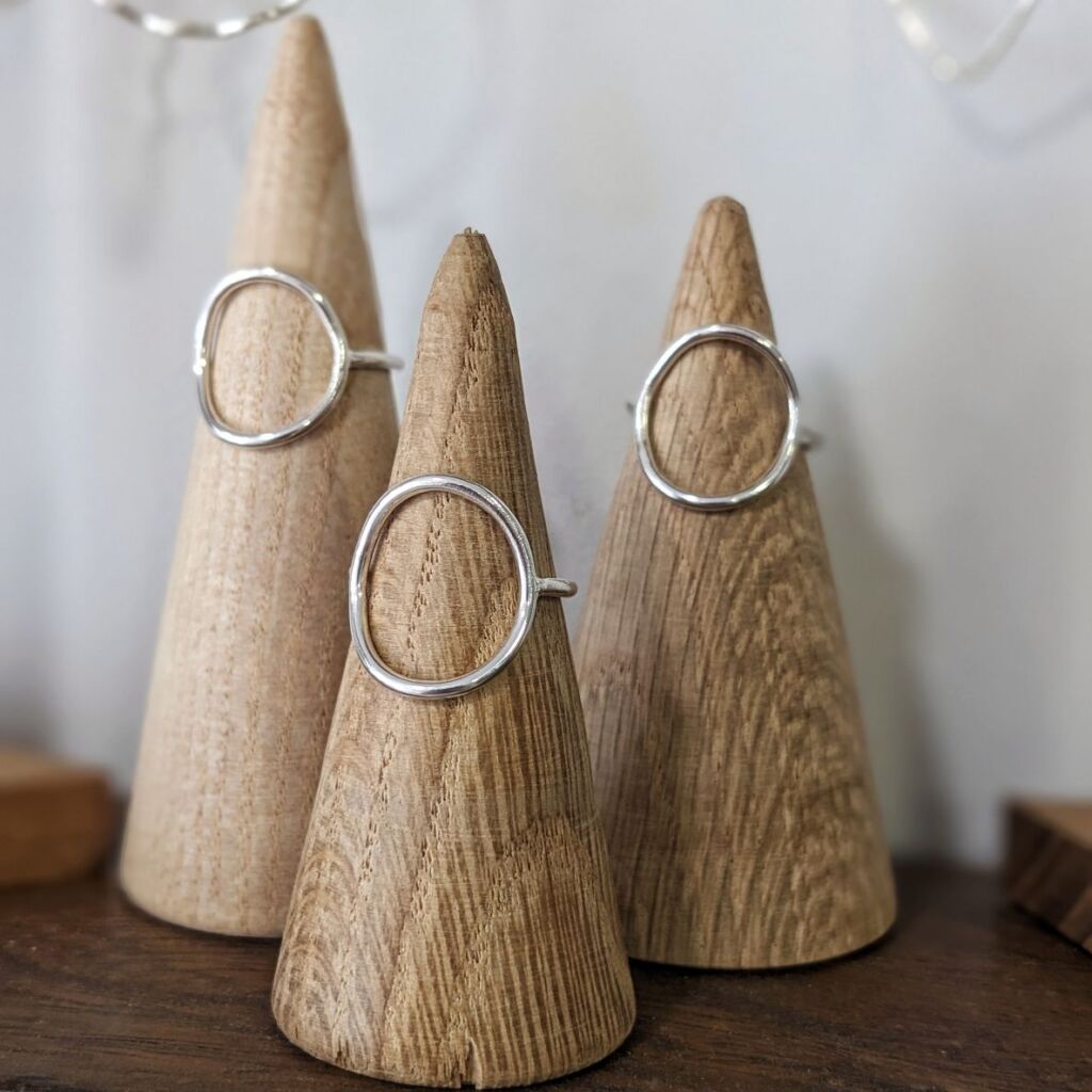 Handmade from sterling silver, this delicate ring features a central circle which has been shaped to hug the curve of your finger. It gives the impression of a statement ring whilst at the same time being barely there, and looks as good worn on its own as it does alongside other adorned fingers. Trust me, you’ll love it!
