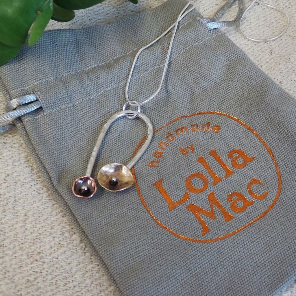 You will receive your mixed metal floral pendant tissue wrapped in a LollaMac branded grey cotton pouch. If you require your pendant gift boxed, please select the option below.