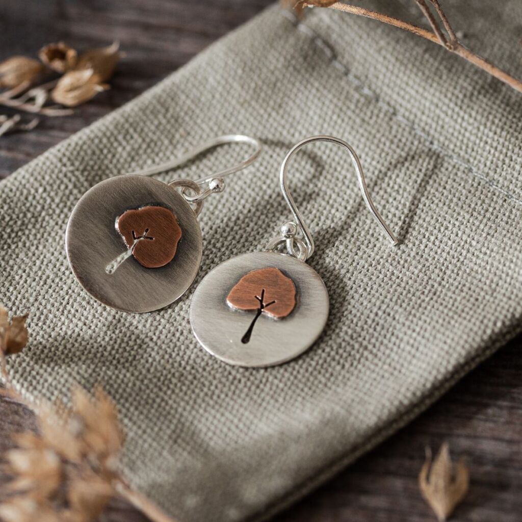 Sterling Silver & Copper Tree Drop Earrings (Oak)